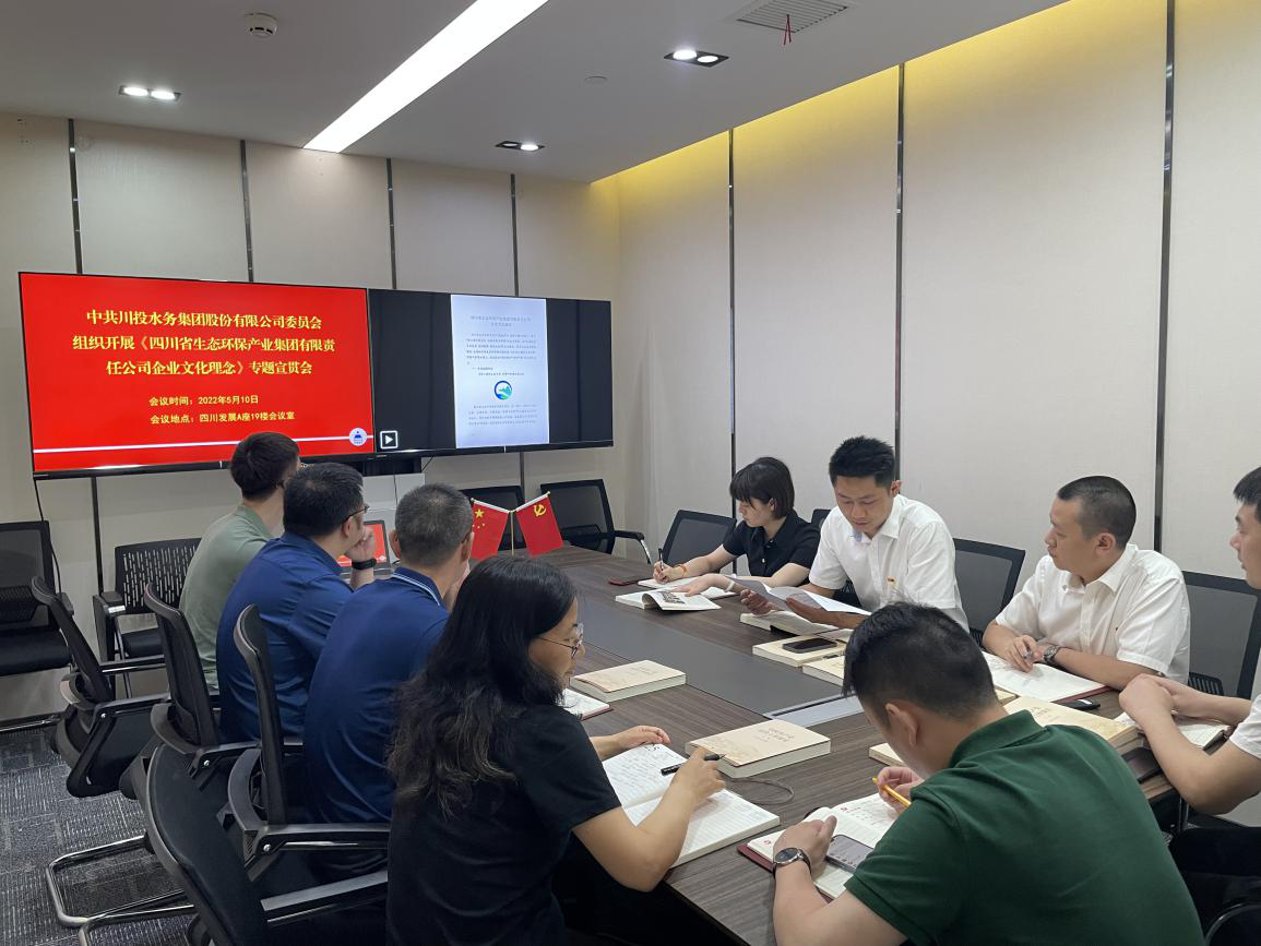 5月10日,為學(xué)習(xí)貫徹四川生態(tài)環(huán)保集團(tuán)黨委《關(guān)于印發(fā)四川省生態(tài)環(huán)保產(chǎn)業(yè)集團(tuán)有限責(zé)任公司企業(yè)文化理念的通知》(四川生態(tài)環(huán)保集團(tuán)黨委〔2022〕52號)文件精神,川投水務(wù)集團(tuán)副總經(jīng)理譚衛(wèi)鵬緊緊圍繞“四川生態(tài)環(huán)保集團(tuán)企業(yè)文化理念”進(jìn)行了專題宣貫,全體黨員、干部參加了學(xué)習(xí)。